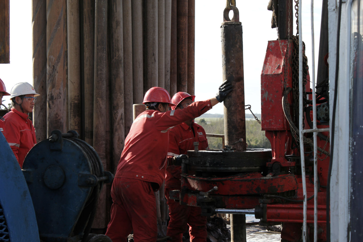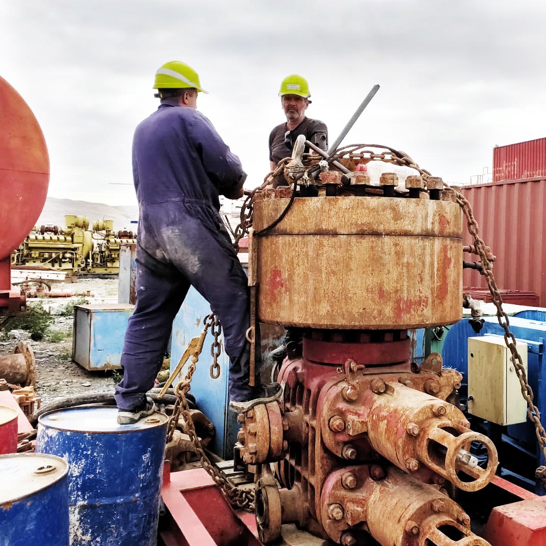 Block CEO Paul Haywood alongside senior management from CNPC's drilling site in Georgia - December 2023